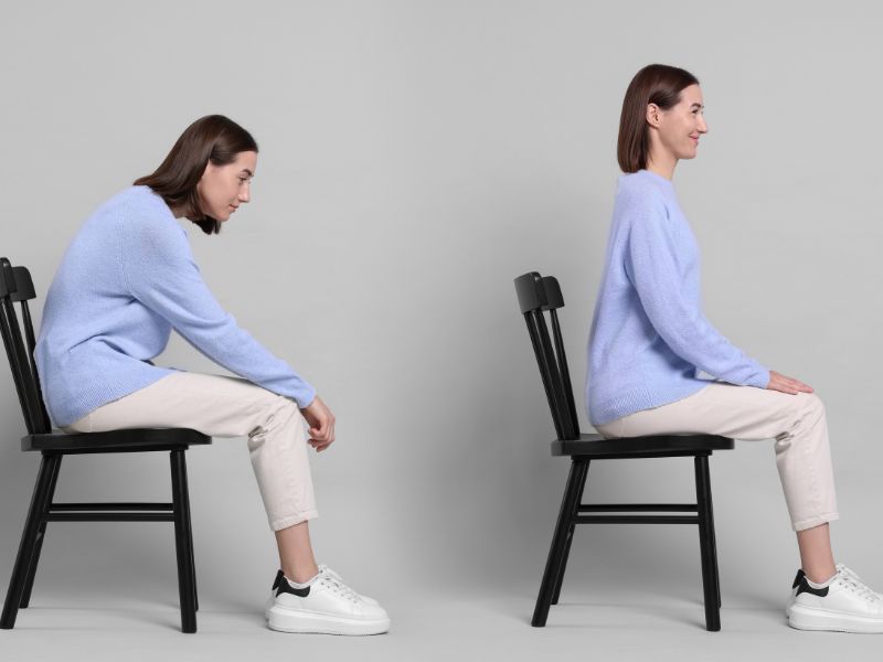 Điều chỉnh tư thế là bước quan trọng để giảm áp lực lên thắt lưng. Ngồi thẳng, chân chạm đất, vai thả lỏng và màn hình ngang tầm mắt. Khi nâng vật nặng, hãy dùng lực từ chân. Tránh đứng gập người quá lâu khi làm việc trên cao.