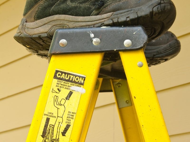 Trong quá trình làm việc, không nên đứng quá cao so với bậc thang quy định. Đồng thời, cần giữ thăng bằng và hạn chế di chuyển mạnh khi đang đứng trên thang.