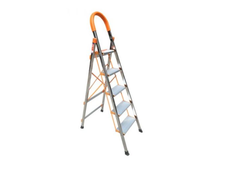 Mẫu thang 5 bậc này là lựa chọn lý tưởng cho những công việc cần độ cao vừa phải như vệ sinh trần nhà, sửa chữa hệ thống điện hay lấy đồ trên kệ cao. Tay vịn chắc chắn cùng với mặt bậc rộng giúp người dùng yên tâm khi di chuyển và đứng làm việc. Khung thang làm từ inox sáng bóng chống han gỉ, chịu lực tốt, tuổi thọ sử dụng lâu dài. Chân thang được thiết kế chống trượt, tăng độ bám khi đứng trên nền gạch hoặc sàn trơn.