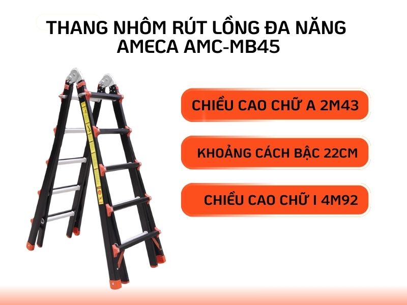 Thang nhôm rút lồng đa năng Ameca AMC-MB45 có khả năng điều chỉnh chiều cao linh hoạt